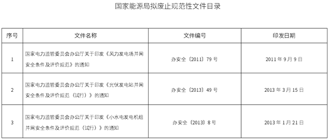 國家能源局綜合司關(guān)于公開征求擬廢止規(guī)范性文件意見的公告