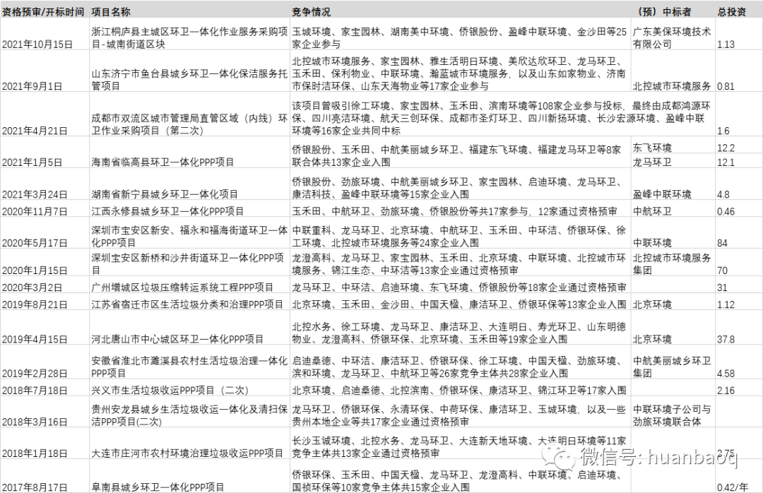 ▼表2 2017年至今部分競(jìng)爭(zhēng)激烈的環(huán)衛(wèi)項(xiàng)目列表