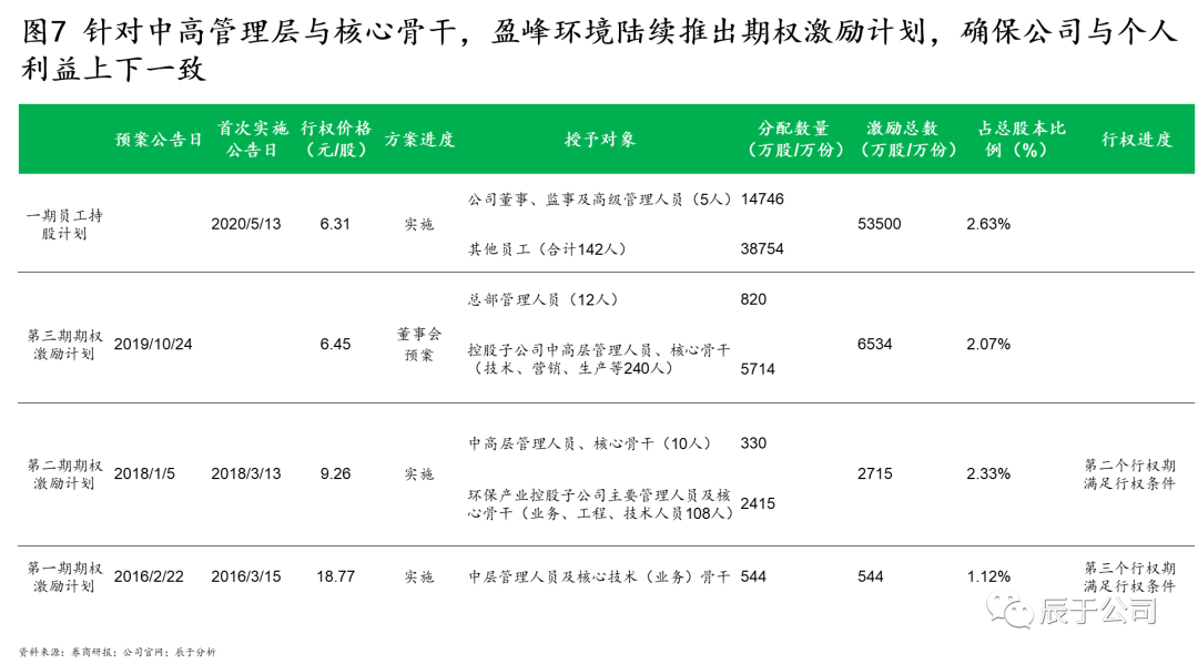 盈峰環(huán)境的掌舵人何劍鋒曾在多個場合下強調(diào)其發(fā)展的三個核心:訂單導向、技術(shù)創(chuàng)新、人才激勵。自2016年開始,盈峰環(huán)境多次推出人才激勵計劃,把握獎勵過去、激勵未來的核心觀念,不斷提高激勵總額度、擴大激勵對象與范圍、優(yōu)化業(yè)績考核要求,既完善了員工薪酬結(jié)構(gòu),提升了員工積極性與穩(wěn)定性,也實現(xiàn)了治理結(jié)構(gòu)的優(yōu)化,保障管理層與公司利益的長期一致性(見圖7)。