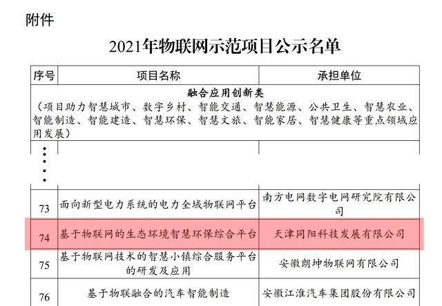 喜報(bào)|同陽(yáng)科技強(qiáng)勢(shì)入圍工信部2021年度物聯(lián)網(wǎng)示范項(xiàng)目名單
