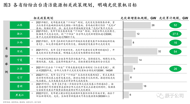 更加令人振奮的是,30·60雙碳風(fēng)口之下,我國(guó)光伏行業(yè)正迎來新的發(fā)展契機(jī),各省也在紛紛出臺(tái)光伏相關(guān)政策,明確光伏裝機(jī)目標(biāo),例如山東省在其能源發(fā)展“十四五”規(guī)劃中指出力爭(zhēng)到2025年末,光伏累計(jì)規(guī)模達(dá)到52GW,“十四五”期間省內(nèi)光伏新增裝機(jī)規(guī)模達(dá)26GW,相當(dāng)于翻了一番(見圖3)。