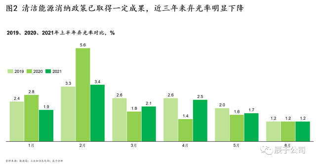 二是消納問題。電力消納曾制約我國(guó)光伏行業(yè)大規(guī)模發(fā)展,主要表現(xiàn)在三個(gè)方面:1)供需逆向分布,太陽(yáng)能資源多分布于“三北”地區(qū),而用電負(fù)荷主要在中東部和南方地區(qū),由此帶來的跨省區(qū)輸電壓力較大;2)供大于需,近年在國(guó)家政策的支持下,光伏發(fā)電裝機(jī)保持著較快的增長(zhǎng),遠(yuǎn)超全社會(huì)用電量的增速,供需不匹配造成了較大的消納壓力;3)能源波動(dòng)性強(qiáng),光伏發(fā)電受自然條件影響存在比較大的波動(dòng)性,大規(guī)模并網(wǎng)后,給電力系統(tǒng)的調(diào)度運(yùn)行帶來了較大挑戰(zhàn)??上驳氖?,在儲(chǔ)能技術(shù)、跨區(qū)域交易市場(chǎng)、“光伏+”場(chǎng)景日新月異之下,上述消納問題正逐步得以解決:例如2020年發(fā)布的《關(guān)于建立健全清潔能源消納長(zhǎng)效機(jī)制的指導(dǎo)意見(征求意見稿)》鼓勵(lì)推動(dòng)電儲(chǔ)能建設(shè)和參與,2018年發(fā)布的《關(guān)于積極推進(jìn)電力市場(chǎng)化交易的通知》指出加快電力市場(chǎng)建設(shè),提高市場(chǎng)化交易比重,2020年發(fā)布的《關(guān)于加快新型建筑工業(yè)化發(fā)展的若干意見》指出促進(jìn)與建筑相結(jié)合的光伏發(fā)電系統(tǒng)應(yīng)用等。隨之而來的是,近三年來?xiàng)壒饴拭黠@下降(見圖2)。