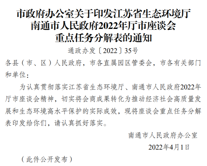 《通知》中具體將南通市2022年生態(tài)環(huán)境保護(hù)工作分解為以下12項內(nèi)容:
