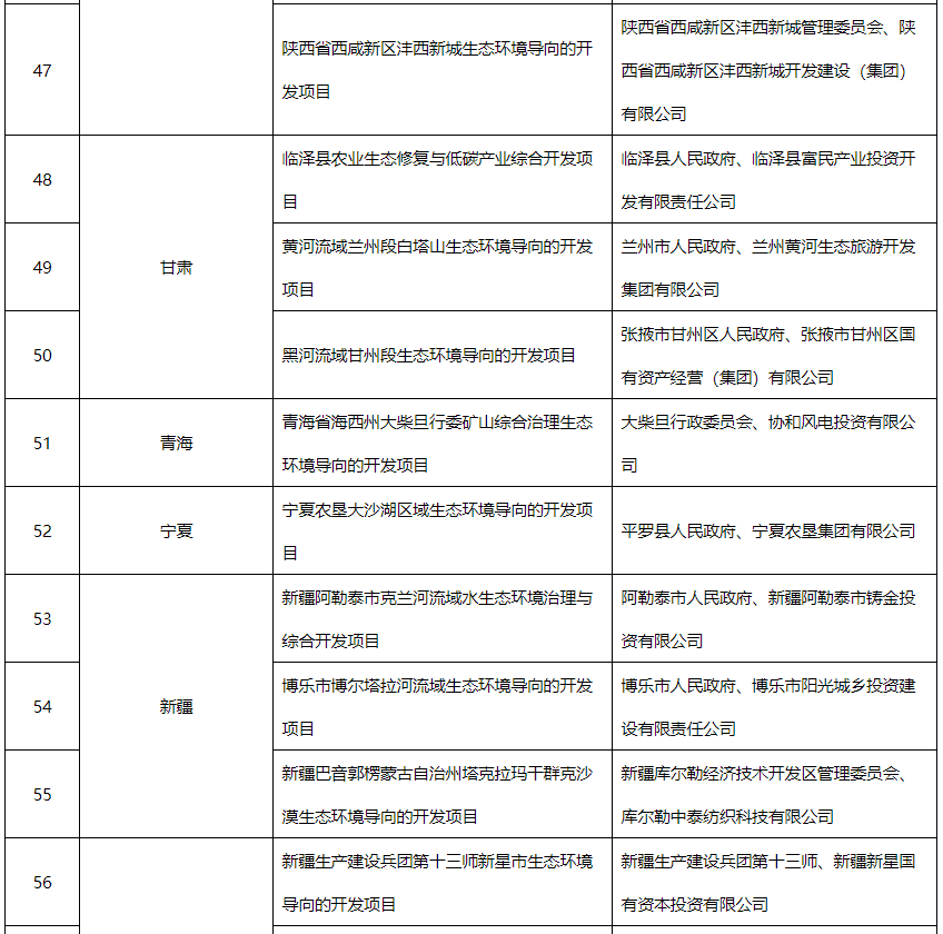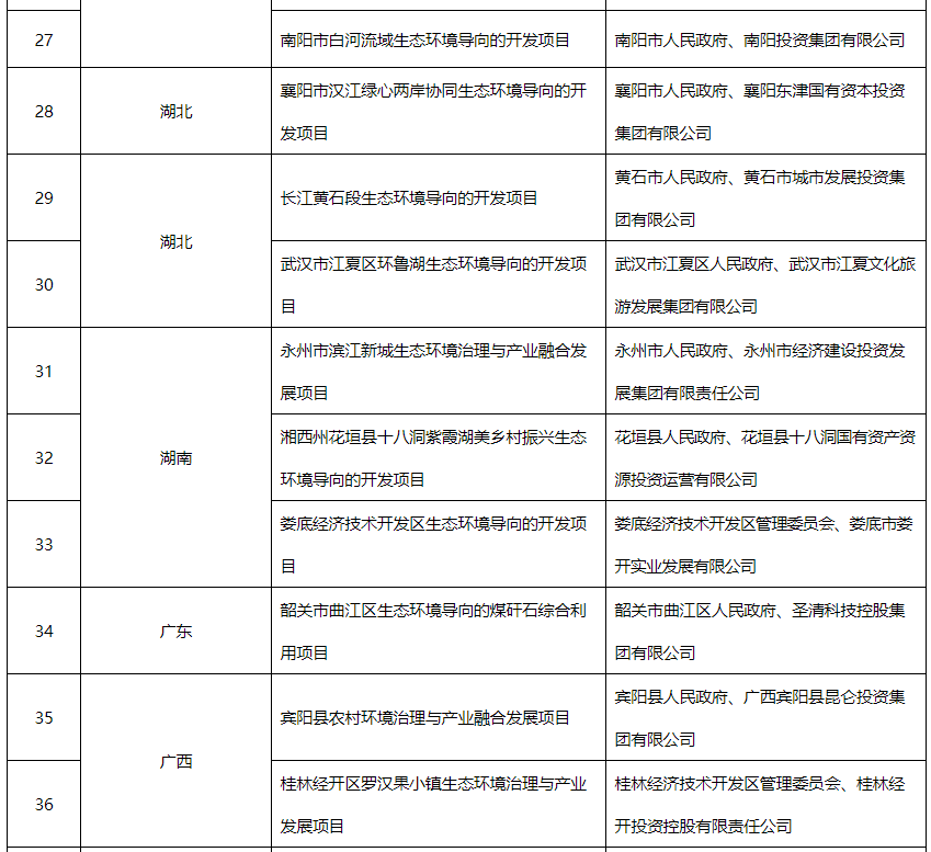 以下為第二批生態(tài)環(huán)境導(dǎo)向的開發(fā)(EOD)模式試點項目名單表:
