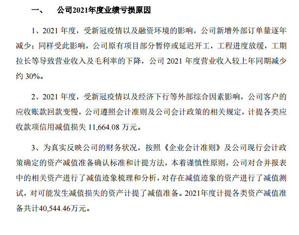 而這些,都可以看做是PPP暴雷后的次生危害,一直延續(xù)到了現(xiàn)在。這種影響,即使在企業(yè)完成混改后,也仍然需要很長時間才能消化。比如,節(jié)能鐵漢就表示,長達(dá)兩年多的經(jīng)營困境,中節(jié)能集團(tuán)年初完成并購后在管理方面做了大量的融合工作,公司在報告期內(nèi)仍處于修復(fù)狀態(tài),直接影響了公司經(jīng)營。如果說行業(yè)屬性是根本原因,PPP暴雷是最大變量,那么新冠疫情就是“黑天鵝”和“灰犀?!保沟铆h(huán)保行業(yè)“屋漏偏逢連夜雨”,進(jìn)一步加劇了情況的嚴(yán)重程度。比如,博世科就表示,受經(jīng)濟(jì)下行、全球新冠疫情反復(fù)、環(huán)境治理行業(yè)市場競爭加劇等因素影響,報告期內(nèi)公司國內(nèi)外業(yè)務(wù)均受到了不同程度的影響,獲取訂單及項目實施不及預(yù)期。博天環(huán)境也解釋說,2021年度,受新冠疫情以及融資環(huán)境的影響,公司新增外部訂單量逐年減少;同樣受此影響,公司原有項目部分暫停或延遲開工,工程進(jìn)度放緩,工期拉長等導(dǎo)致營業(yè)收入及毛利率的下降,公司2020年年度營業(yè)收入較上年同期減少約30%。還有,2021年度,受新冠疫情、經(jīng)濟(jì)下行等外部綜合因素影響,博天客戶的應(yīng)收賬款回款變慢,公司遵照會計準(zhǔn)則及公司會計政策的相關(guān)規(guī)定,還計提各類應(yīng)收款項信用減值損失約21,900萬元。總之,疫情對環(huán)保企業(yè)的影響是全方位的,既有新增訂單的影響,也有現(xiàn)有項目工程的影響,還有應(yīng)收賬款回款速度的影響,給環(huán)保企業(yè)造成了不小的麻煩。