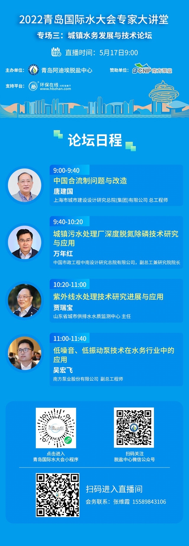 海水淡化與濃鹽水綜合利用論壇、工業(yè)節(jié)水與污水資源化論壇都看了吧,相信2022青島國際水大會的系列專家大講堂的專業(yè)調(diào)性已經(jīng)毋庸贅述了。5月17日,青島國際水大會系列專家大講堂之專場三:城鎮(zhèn)水務(wù)發(fā)展與技術(shù)論壇 即將高調(diào)開場。