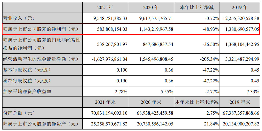 業(yè)績承諾2021年凈利潤不低于15%,實際下降48.93%