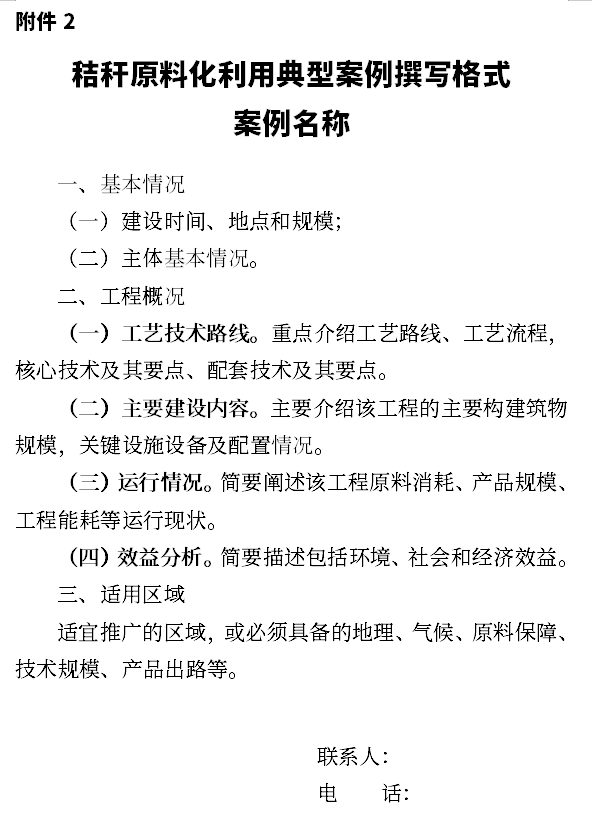 關(guān)于征集農(nóng)作物秸稈原料化利用典型案例的通知