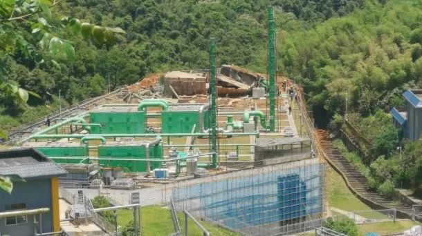 作為福州市區(qū)唯一的垃圾滲瀝液處理項(xiàng)目,它主要處理福州市紅廟嶺垃圾綜合處理場(chǎng)滲瀝液、垃圾焚燒廠滲瀝液和場(chǎng)區(qū)的生活污水。2018年,紅廟嶺循環(huán)經(jīng)濟(jì)生態(tài)產(chǎn)業(yè)園進(jìn)行了一輪升級(jí)改造,工程之一就是“紅廟嶺垃圾滲瀝液調(diào)節(jié)池整治工程”。新建滲瀝液調(diào)節(jié)池有效容積10萬m3、廢氣收集處理系統(tǒng)、修建配套邊坡?lián)鯄σ约皩?duì)現(xiàn)狀滲瀝液集污池進(jìn)行防滲與加蓋處理,以及分別來自填埋場(chǎng)與焚燒廠的滲瀝液接至新建調(diào)節(jié)池的管道系統(tǒng)。