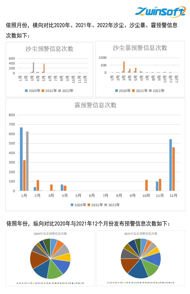 2021年,我國(guó)首次沙塵天氣過程發(fā)生時(shí)間為1月10日,較2000-2020年平均(2月17日)偏早38天,較2020年(2月13日)偏早34天,沙塵過程首發(fā)時(shí)間為2002年以來最早。不僅如此,通過《國(guó)家突發(fā)事件預(yù)警信息發(fā)布情況月報(bào)》2020年1月——2022年3月數(shù)據(jù)的比對(duì)分析,智易時(shí)代還發(fā)現(xiàn)了一些有趣的小規(guī)律。