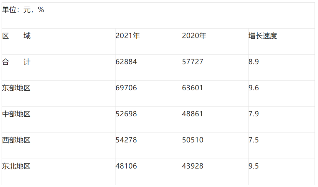 表1 2021年城鎮(zhèn)非私營單位分區(qū)域就業(yè)人員年平均工資