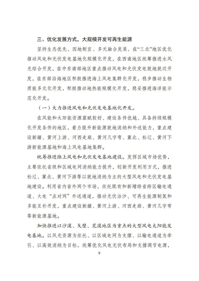 在“三北”地區(qū)優(yōu)化推動風(fēng)電和光伏發(fā)電基地化規(guī)模化開發(fā),在西南地區(qū)統(tǒng)籌推進(jìn)水風(fēng)光綜合開發(fā),在中東南部地區(qū)重點(diǎn)推動風(fēng)電和光伏發(fā)電就地就近開發(fā),在東部沿海地區(qū)積極推進(jìn)海上風(fēng)電集群化開發(fā)。