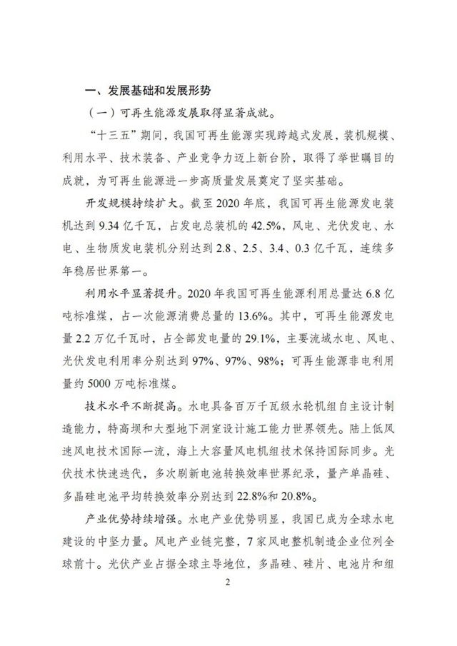 關(guān)于印發(fā)“十四五”可再生能源發(fā)展規(guī)劃的通知