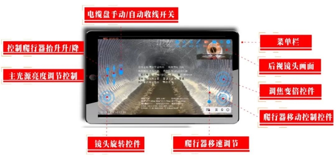前后視更清晰,收線速度匹配:前后視光源強(qiáng)度更高,成像更清晰;爬行器后退的速度和線纜盤收線的速度一致,回收過程不壓線。