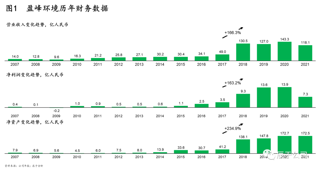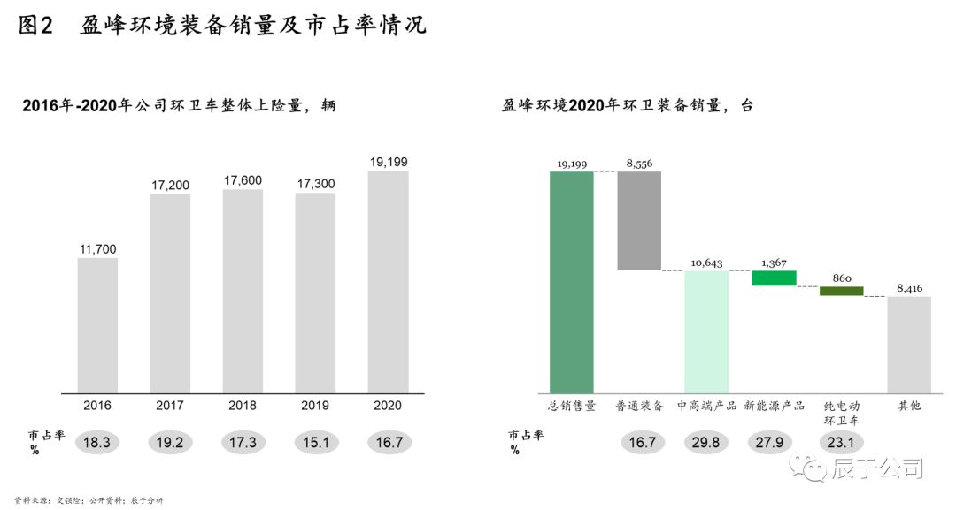 盈峰環(huán)境2015年轉(zhuǎn)型進(jìn)入環(huán)保市場,用短短四年的時間就實現(xiàn)了營收上百億的目標(biāo)。2021年收入達(dá)118億元,凈利潤7.3億元,截至2021年末凈資產(chǎn)172.5億元(見圖1)。環(huán)衛(wèi)裝備和環(huán)衛(wèi)服務(wù)是盈峰環(huán)境的兩大業(yè)務(wù)板塊,2021年兩者占營收總額近八成,兩者毛利潤占總額的55%。其中,環(huán)衛(wèi)裝備自2016年起年銷量便達(dá)上萬臺,同時增速明顯,已連續(xù)21年處于國內(nèi)環(huán)衛(wèi)裝備行業(yè)銷售額第一名。在中高端環(huán)衛(wèi)裝備市場優(yōu)勢則更加明顯,有超過55%的環(huán)衛(wèi)裝備銷量由中高端產(chǎn)品貢獻(xiàn),智慧裝備、新能源裝備等市占率也穩(wěn)居國內(nèi)行業(yè)前列(見圖2)。截至2021年底,在手環(huán)衛(wèi)服務(wù)項目179個,遍布全國26個省市,年營收30余億,較上年同期增長54%,無論是存量市場還是增量市場均位居行業(yè)前三。國內(nèi)發(fā)展勢頭強(qiáng)勁的同時,也在東南亞、非洲、歐洲等海外市場進(jìn)行了嘗試:2020年海外業(yè)務(wù)實現(xiàn)營收5600萬元,在歐洲,通過收購意大利當(dāng)?shù)仄髽I(yè)切入市場,2020年初斬獲羅馬環(huán)衛(wèi)超1億元訂單,并向意周邊國家拓展;在東南亞與非洲,借助國家“一帶一路”政策,目前已在印尼、柬埔寨、老撾、加納等國家中標(biāo)項目。本文試圖抽絲剝繭,剖析盈峰環(huán)境的發(fā)展歷程,總結(jié)其不走尋常路、異軍突起中國環(huán)衛(wèi)市場的成功因素,為各類企業(yè)、尤其是環(huán)衛(wèi)相關(guān)企業(yè)轉(zhuǎn)型發(fā)展提供啟迪和思考。盈峰環(huán)境異軍突起的四大關(guān)鍵