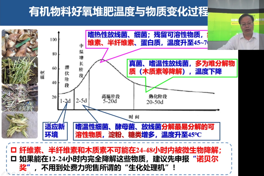 (在一次在線講座中,吳老師提出,如果12-24小時降解纖維素、半纖維素,木質(zhì)素,建議先申報諾貝爾獎,不必費力兜售“生化處理機(jī)”,圖為講座截圖)