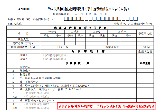 納稅人季度預(yù)繳享受所得減免優(yōu)惠政策時,應(yīng)在主表第8行的下級行次下拉選擇“從事符合條件的環(huán)境保護、節(jié)能節(jié)水項目的所得定期減免企業(yè)所得稅”并在“本年累計”列次填報經(jīng)計算后的減免所得額。