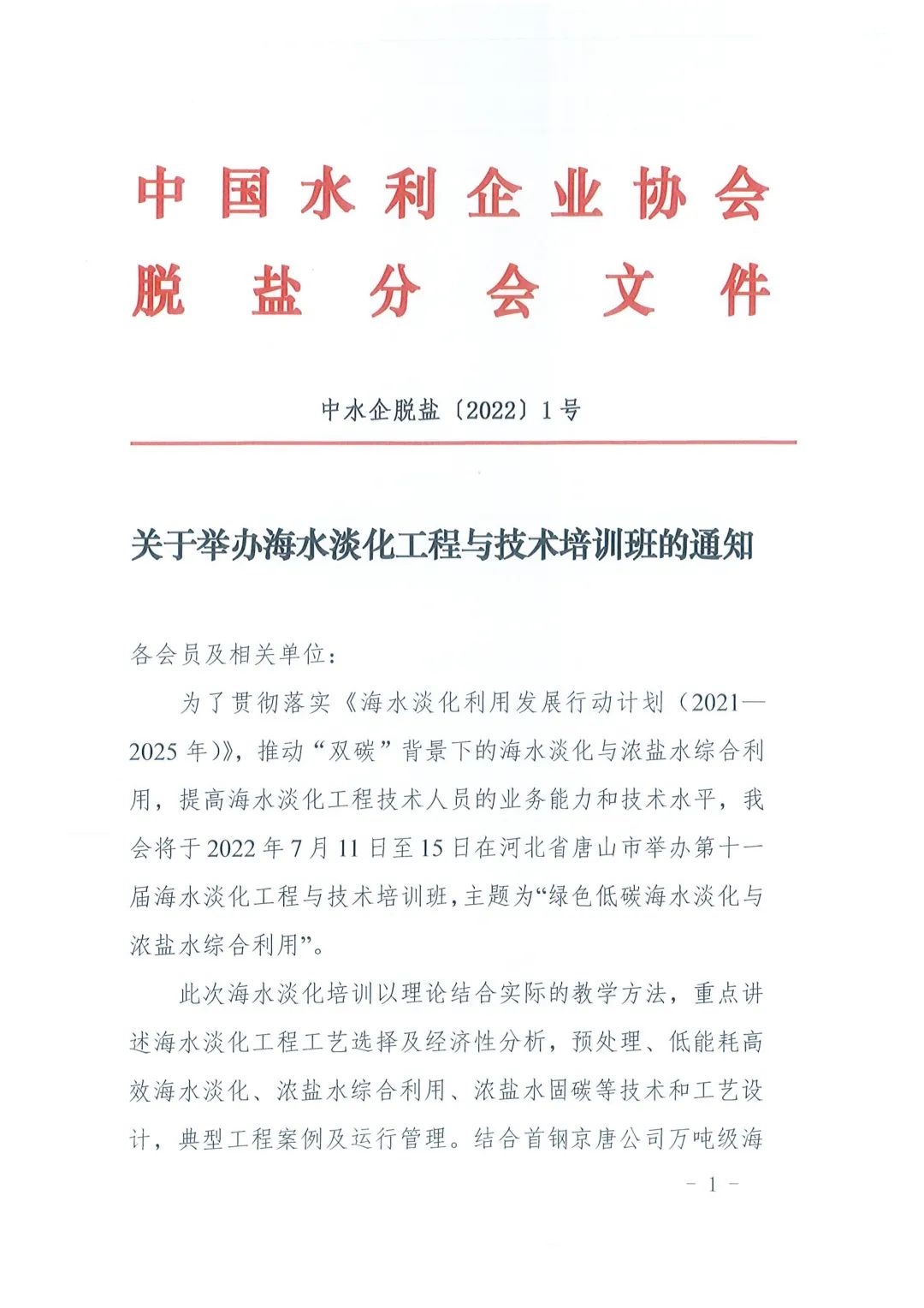 為了貫徹落實《海水淡化利用發(fā)展行動計劃(2021—2025年)》,推動“雙碳”背景下的海水淡化與濃鹽水綜合利用,由中國水利企業(yè)協(xié)會脫鹽分會主辦的第十一屆海水淡化工程與技術(shù)培訓(xùn)班計劃于2022年7月11日至15日在河北省唐山市曹妃甸區(qū)舉辦,本屆海水淡化培訓(xùn)班的主題是“綠色低碳”海水淡化與濃鹽水綜合利用,課程內(nèi)容豐富充實,教學(xué)質(zhì)量專業(yè)。此次培訓(xùn)以理論結(jié)合實踐的教學(xué)方法,結(jié)合首鋼京唐公司“燃-熱-電-水-鹽”五效一體高效循環(huán)利用技術(shù)現(xiàn)場進(jìn)行實踐教學(xué)。