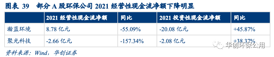 2021年8月,財政部發(fā)布了11個政府和社會資本合作(PPP) 會計處理實施問答,對PPP項目建造期間發(fā)生的建造支出在現(xiàn)金流量表中應如何列示做出進一步說明:PPP項目建造期間相關(guān)建造支出作為投資性現(xiàn)金流列示調(diào)整至經(jīng)營性現(xiàn)金流列示。我們認為該會計準則的變更是2021年部分環(huán)保上市公司經(jīng)營性現(xiàn)金流下滑的原因之一。