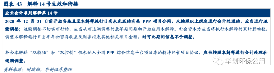 解釋14號要求對部分借款費用予以費用化處理。解釋2號中對價類型(無形資產(chǎn)模式、金融資產(chǎn)模式或混合模式)對借款費用資本化沒有影響而解釋14號明確借款費用的資本化對象是無形資產(chǎn),對價類型是金融資產(chǎn)或者是混合模式下的金融資產(chǎn)部分,相關(guān)的借款費用均應予以費用化。我們認為該會計準則的變更是2021年部分環(huán)保上市公司財務(wù)費用上漲的原因之一。