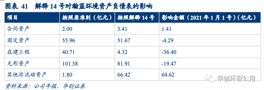 以瀚藍環(huán)境為例,公司主要采用 PPP 混合模式區(qū)分金融資產(chǎn)和無形資產(chǎn)核算,PPP 項目資產(chǎn)不作為固定資產(chǎn)核算,影響合同資產(chǎn)、其他非流動資產(chǎn)增加,在建工程、固定資產(chǎn)、無形資產(chǎn)減少。