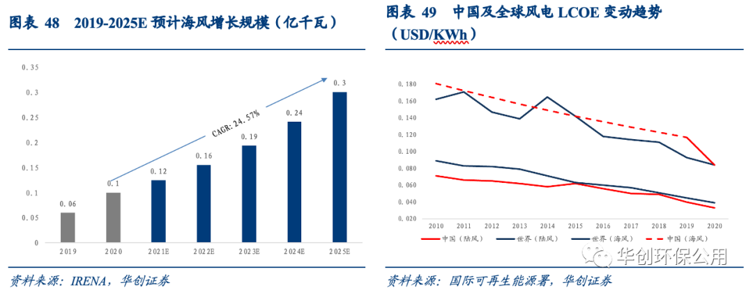 海上風電增長空間巨大,平價節(jié)點或?qū)⒂瓉硌b機潮。海上風電“十四五”期間預計新增裝機200GW,20-25年CAGR約25%,高于十四五期間風電整體13.5%的增速。隨著海風伙伴計劃首次提出海風將于2024年實現(xiàn)平價,海風或?qū)⒂谄絻r節(jié)點迎來裝機潮,海風未來發(fā)展可期。