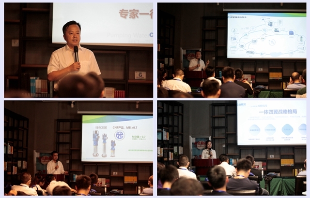 參觀環(huán)節(jié)結(jié)束后,南方泵業(yè)杭州銷售公司副總經(jīng)理金甲根金總向來訪專家領導致歡迎辭,對于本次浙江大學建筑設計研究院的考察指導表示感謝。隨后南方泵業(yè)分別從公司概況、建筑用泵產(chǎn)品、成套給水排水智慧化技術(shù)應用這三個方面進行了匯報分享。專家們對于南方泵業(yè)生產(chǎn)的CDM輕型立式多級離心泵、SS高效靜音水務專用泵等應用于建筑行業(yè)的多款高能效泵產(chǎn)品給予了高度贊賞,特別是南方智水在行業(yè)內(nèi)率先實現(xiàn)并使用了變壓控制方法,進行壓力優(yōu)化,提升設備運行效率,實現(xiàn)節(jié)能降耗目標,引起了參會嘉賓的集中關(guān)注。