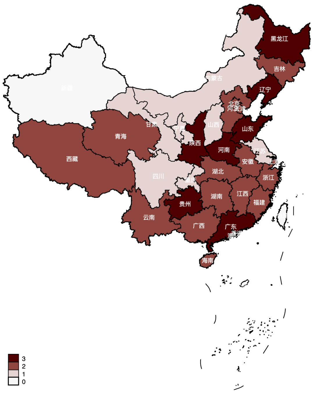 地區(qū)上看,中央環(huán)保督察組進(jìn)駐的31個(gè)省區(qū)市中,除新疆維吾爾自治區(qū)(含新疆生產(chǎn)建設(shè)兵團(tuán))外,其余30個(gè)省區(qū)市均被反饋過生活垃圾問題。其中,河南省、山東省、遼寧省、廣東省、山西省、貴州省和黑龍江省最為突出,在3次中央環(huán)保督察中均被反饋了生活垃圾問題,詳見圖2。