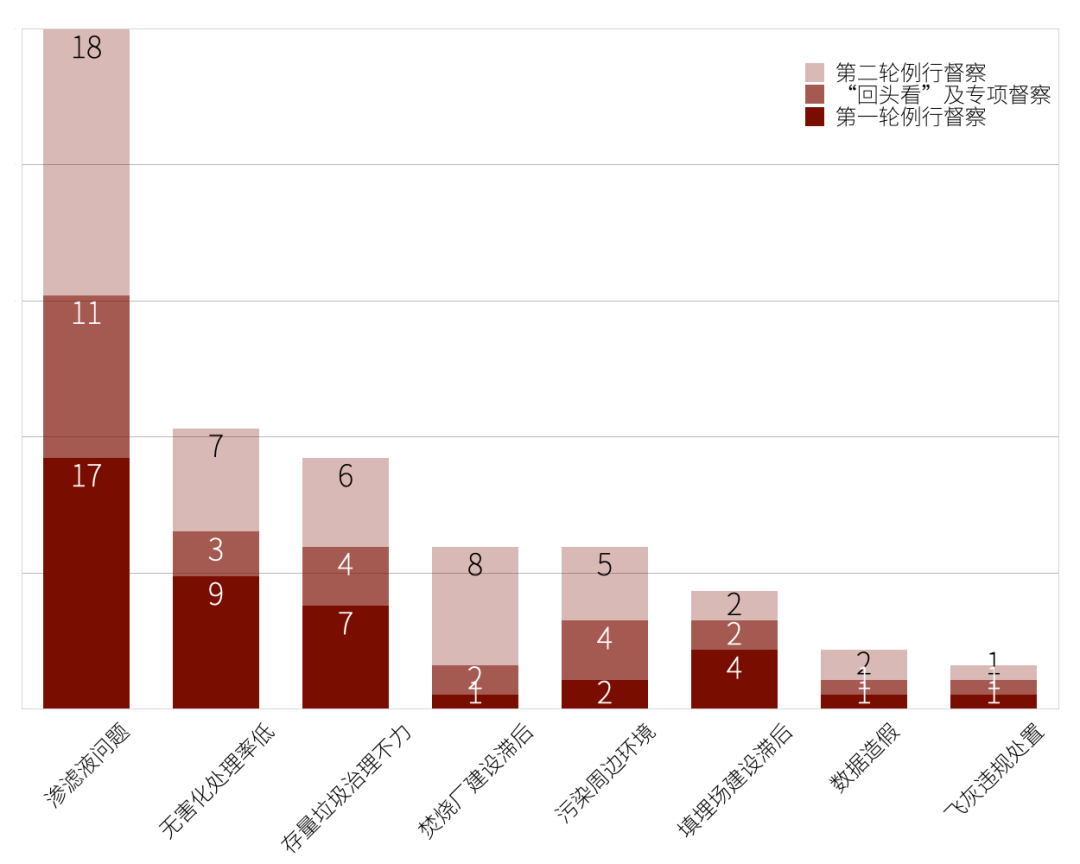 中央環(huán)保督察作為中國(guó)生態(tài)文明建設(shè)的一項(xiàng)重大制度創(chuàng)新,是落實(shí)環(huán)境保護(hù)“黨政同責(zé)”“一崗雙責(zé)”主體責(zé)任的重要舉措,具有代表中央權(quán)威、剛性約束、公眾參與、持續(xù)追蹤等特征。2015年開始至2022年6月,中央環(huán)保督察組共完成了2輪針對(duì)31個(gè)省區(qū)市的例行督察和1輪針對(duì)20個(gè)省區(qū)市的“回頭看”及專項(xiàng)督察,其中“生活垃圾”作為與公眾生活息息相關(guān)的議題,在中央環(huán)保督察工作組向各省區(qū)市反饋督察情況時(shí)頻繁出現(xiàn),個(gè)別嚴(yán)重問題因整改不力被公眾反復(fù)舉報(bào)。統(tǒng)計(jì)發(fā)現(xiàn),82份反饋意見中有60份涉及生活垃圾問題,分類統(tǒng)計(jì)歸納為兩大類22個(gè)小項(xiàng)共包含161次生活垃圾問題(部分省份的單份反饋意見中同時(shí)包括多個(gè)不同的生活垃圾問題),其中滲濾液違規(guī)處理問題最為突出、飛灰違規(guī)處置等問題反復(fù)出現(xiàn)、焚燒廠建設(shè)滯后等階段性出現(xiàn)。中央環(huán)保督察源自2015年7月中央全面深化改革領(lǐng)導(dǎo)小組第十四次會(huì)議,會(huì)議審議通過《環(huán)境保護(hù)督察方案(試行)》,也標(biāo)志著中央生態(tài)環(huán)境保護(hù)督察制度(原中央環(huán)境保護(hù)督察,一般稱中央環(huán)保督察)正式建立。