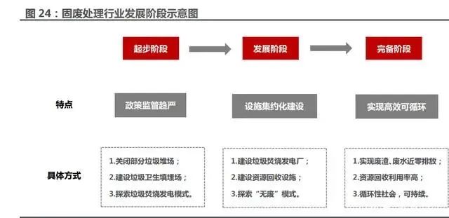 我們將固廢處理行業(yè)分為起步階段、發(fā)展階段、完備階段三個歷程?!笆濉?期間,隨著項目加快推進,固廢處理能力得到迅速提升,在固廢處理的“量”上, 現(xiàn)有項目已滿足基本處理需求;“十四五”期間,結合減污降碳的目標,在固廢處 理上,將更注重固廢處理“質”的提升。目前,我國固廢行業(yè)正處于由發(fā)展階段向 完備階段升級的過程,對于資源回收和近零排放提出更高的需求。2021 年 12 月國家發(fā)改委等 18 部委聯(lián)合發(fā)布《“十四五”時期“無廢城市”建設工作方案》,提出推動 100 個左右地級及以上城市開展“無廢城市”建設;到 2025 年,“無廢城市”固體廢物產(chǎn)生強度較快下降,綜合利用水平顯著提升,無害 化處置能力有效保障,減污降碳協(xié)同增效作用充分發(fā)揮,基本實現(xiàn)固體廢物管理信 息“一張網(wǎng)”。