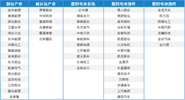 表3 氫能產(chǎn)業(yè)鏈各上市公司