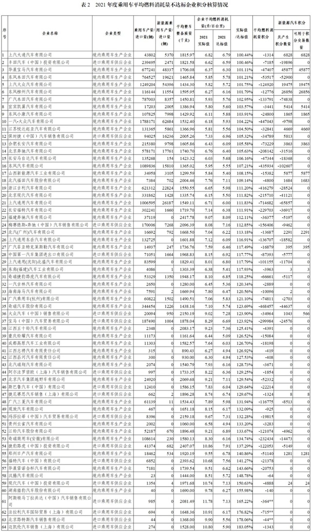 原標題:2021年度中國乘用車企業(yè)平均燃料消耗量與新能源汽車積分情況公告