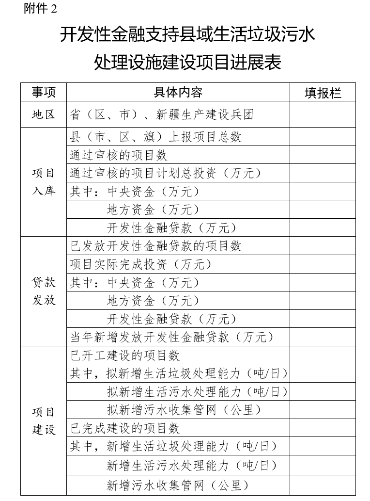 住房和城鄉(xiāng)建設(shè)部、國(guó)家開發(fā)銀行建立工作協(xié)調(diào)機(jī)制,共同開展縣域生活垃圾污水處理設(shè)施建設(shè)相關(guān)研究,優(yōu)先選取積極性高、有條件的地區(qū)開展試點(diǎn)工作,探索市場(chǎng)化、可持續(xù)的項(xiàng)目包裝和融資支持模式,共同培育孵化大型專業(yè)化的建設(shè)運(yùn)營(yíng)主體。省級(jí)住房和城鄉(xiāng)建設(shè)部門、國(guó)家開發(fā)銀行省(區(qū)、市)分行要建立工作協(xié)調(diào)機(jī)制,及時(shí)共享開發(fā)性金融支持縣域生活垃圾污水處理設(shè)施建設(shè)項(xiàng)目信息及調(diào)度情況,協(xié)調(diào)解決項(xiàng)目融資、建設(shè)中存在的問題和困難;每年12月底前將開發(fā)性金融支持縣域生活垃圾污水處理設(shè)施建設(shè)項(xiàng)目進(jìn)展表(附件2)分別報(bào)住房和城鄉(xiāng)建設(shè)部、國(guó)家開發(fā)銀行。