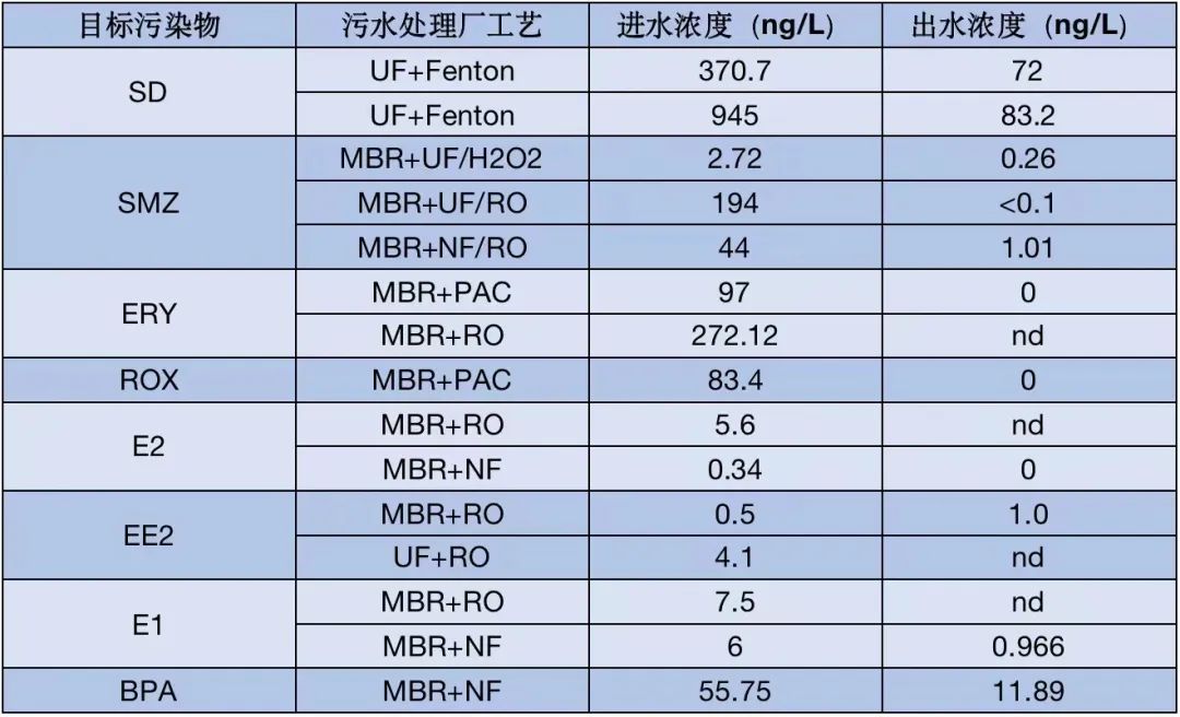 這3種投加方式均可實現(xiàn)對新污染物的穩(wěn)定去除,但對比來看:選擇適宜的PAC,優(yōu)化其投加量可提高吸附去除效率。有研究表明,隨著溶解性有機(jī)碳的增加,PAC對新污染物的吸附效率逐漸降低,當(dāng)二級出水中有機(jī)碳在5~10mg/L范圍內(nèi)時,需要投加10~20mg/LPAC,可達(dá)到對新污染物的有效去除(>80%),同時能達(dá)到對有機(jī)碳最高40%的去除率,水力停留時間為20~30min,PAC的停留時間為1~2d。采用PAC吸附作為升級改造工藝去除新污染物,電能消耗將提高10%~30%,總成本將提高5%~35%。在實際運行中,PAC吸附工藝會產(chǎn)生大量的含炭污泥,使污泥處理能耗相應(yīng)增加。據(jù)研究數(shù)據(jù)表明,PAC投加量為10~20 mg/L時,PAC吸附工藝的電能消耗約為0.02 kWh/m3,后加砂濾單元產(chǎn)生的電能消耗約為0.06 kWh/m3。采用PAC回流到生物池的工藝比不采用回流的工藝對新污染物的去除率可提高10%~50%,但同時也會增加5%~10%的污泥。GAC過濾器一般置于常規(guī)污水處理廠工藝中的二沉池之后,既可吸附又可過濾,它可以連續(xù)運行,無需后續(xù)的分離步驟。但GAC成本較高,再生困難,因此在實際應(yīng)用中不如PAC廣泛。活性炭吸附過程受許多因素的影響,包括活性炭本身特性(如所用材料、比表面積和表面化學(xué)特性等)、新污染物的物化特性(主要是疏水性、溶解性、電荷和分子大小等)、溶液的化學(xué)特性和組分(如可溶解性有機(jī)物DOM等)和活性炭投加量、吸附質(zhì)的濃度等其他基本參數(shù)。在新污染物的去除技術(shù)中,膜分離技術(shù)同樣也受到了很多關(guān)注,其中以納濾(NF)和反滲透(RO)對新污染物的去除效果最好。NF和RO技術(shù)均采用高壓膜,由于它們的孔徑極小,可以截留較小分子量物質(zhì),一般應(yīng)用于無機(jī)離子和有機(jī)污染物的截留。RO膜可以有效截留(>90%)水中有機(jī)小分子物質(zhì);雖然NF膜由于孔徑稍大截留效果不如RO膜,但NF技術(shù)的能耗較低,在對新污染物的去除中,具有明顯的操作和成本優(yōu)勢。值得一提的是,低壓膜如微濾(MF)膜和超濾(UF)膜由于孔徑較大,不足以截留大部分 新污染物,但因為污水處理廠二級出水中仍含有相對較高濃度的有機(jī)物,會對NF/RO的截留效果造成不利影響,所以MF/UF經(jīng)常作為NF/RO的前處理工藝。有機(jī)物是導(dǎo)致膜污染的主要原因,長期運行時會造成NF/RO膜通量下降、截留效果降低,因此在處理二級出水時,采用MF/UF作為前處理工藝,對于維持NF/RO的長期穩(wěn)定運行十分必要。膜對新污染物的截留率取決于新污染物的物化特性(分子大小和重量,電荷和疏水性)、膜特性(膜材料、孔徑等)及操作條件等。值得一提的是,不同材料的膜對同種新污染物的截留效果不同,同種膜對不同新污染物的截留效果也不同。目前將NF/RO技術(shù)作為實際污水處理廠的升級改造工藝的報道并不多,其主要限制因素是能耗較高、膜污染以及膜分離過程中產(chǎn)生大量需要處理的濃縮液等。膜生物反應(yīng)器(MBR)具有污泥濃度高、生物種類多、出水水質(zhì)穩(wěn)定、固液分離能力強等特點。MBR的膜表面能夠有效的截留有機(jī)污染物,使污染物與污水進(jìn)行分離,所以MBR對大多數(shù)的有機(jī)污染物的截留效果較好。但較長的SRT也可能會導(dǎo)致MBR中懸浮基質(zhì)活性生物量減少,影響對抗生素的去除。而且MBR對有機(jī)污染物的去除效率還受到污泥濃度、溫度和pH值等因素的影響。通過研究MBR工藝在污水處理廠中對新興污染物的去除,有學(xué)者發(fā)現(xiàn)其對E1、E3和BPA的去除率達(dá)到了100%;還有學(xué)者利用MBR工藝處理污水中的抗生素和新興生物群落,研究表明其對TC和CTC的去除率分別為93.6%和83.9%。盡管深度處理能夠去除大部分的新污染物,但仍有一部分新污染物沒有被去除。為此,在實際污水處理工藝中通常把多種深度處理技術(shù)聯(lián)合使用,取長補短,有效地提高有機(jī)污染物的去除效率。根據(jù)文獻(xiàn)資料,小編列舉了多種組合工藝對幾種典型新污染物的去除效果,由圖中可以看出組合工藝對于新污染物的去除效率較高。這是一種高效的水處理工藝,對污水處理廠出水水質(zhì)有了很大的提升,這類聯(lián)合工藝對有機(jī)污染物的去除具有顯著的效果以及使用價值。我國新污染物防范治理起步較晚、工作基礎(chǔ)薄弱雖然在2015年提出開展全國性環(huán)境激素整體監(jiān)測行動,但由于缺乏環(huán)境內(nèi)分泌干擾物(EDCs)的篩選和評估框架,以及監(jiān)測范圍和技術(shù)限制等原因,導(dǎo)致目前仍然無法全面掌握我國近年來環(huán)境內(nèi)分泌干擾物(EDCs)的生產(chǎn)、使用和排放現(xiàn)狀。同時,大多數(shù)新污染物還未納入環(huán)境監(jiān)測體系內(nèi),對于全氟辛烷磺酸(PFOS)等新污染物缺乏監(jiān)管,導(dǎo)致許多全氟辛烷磺酸(PFOS)超標(biāo)的工業(yè)廢水直接排放。雖然在2005年建立了全國細(xì)菌耐藥監(jiān)測計劃,但存在監(jiān)測標(biāo)準(zhǔn)和方法不統(tǒng)一、監(jiān)測覆蓋面不充分、信息公開不夠及時等問題。2、新污染物的管理涉及多個部門,職能交叉,缺乏統(tǒng)籌協(xié)調(diào),污染治理低效例如塑料的生產(chǎn)使用、入海塑料處理、海洋塑料打撈分解、微塑料源頭管控及監(jiān)測等環(huán)節(jié),涉及自然資源部、國家