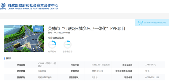 1.環(huán)衛(wèi)作業(yè)設(shè)備周期更新,按服務(wù)范圍增加投入專(zhuān)業(yè)環(huán)衛(wèi)設(shè)備(包括但不限于高壓清洗車(chē)、洗掃車(chē)等各類(lèi)清掃保潔車(chē)輛、壓縮車(chē)、大型勾臂車(chē)等垃圾清運(yùn)車(chē)輛);2.建設(shè)垃圾分類(lèi)投放點(diǎn)289個(gè)(其中城區(qū)213個(gè),鄉(xiāng)鎮(zhèn)中心76個(gè))、新建鎮(zhèn)級(jí)垃圾壓縮站(處理量400噸/日)2座、項(xiàng)目停車(chē)場(chǎng)3個(gè);同時(shí)新建智慧環(huán)衛(wèi)大數(shù)據(jù)信息管理平臺(tái)系統(tǒng)。落實(shí)國(guó)家關(guān)于堅(jiān)持城鄉(xiāng)統(tǒng)籌,將城市環(huán)衛(wèi)工作模式延伸到鎮(zhèn)區(qū)、村(社區(qū))。通過(guò)常態(tài)化、精細(xì)化、智能化、高效化的運(yùn)營(yíng)管控體系,實(shí)現(xiàn)城鄉(xiāng)環(huán)境衛(wèi)生工作的“全方位覆蓋、無(wú)縫隙對(duì)接、一體化管理”目標(biāo),落實(shí)節(jié)能環(huán)保、促進(jìn)環(huán)衛(wèi)市場(chǎng)化發(fā)展等政策情況。預(yù)算金額(元):178,490,000.00預(yù)計(jì)采購(gòu)時(shí)間:2022年10月圖片來(lái)源:財(cái)政部政府和社會(huì)資本合作中心另?yè)?jù)財(cái)政部政府和社會(huì)資本合作中心PPP項(xiàng)目管理庫(kù)公開(kāi)信息顯示,英德市“互聯(lián)網(wǎng)+城鄉(xiāng)環(huán)衛(wèi)一體化”P(pán)PP項(xiàng)目發(fā)起時(shí)間2017年9月,所處階段為采購(gòu)階段,回報(bào)機(jī)制為可行性缺口補(bǔ)助。公布披露信息顯示,英德項(xiàng)目采用BOT模式運(yùn)作,合作期限30年,政府付費(fèi)金額約1.65億元/年,合作期內(nèi)項(xiàng)目財(cái)政承受能力論證測(cè)算的財(cái)政支出責(zé)任需從預(yù)算中安排的支出責(zé)任匯總金額為477435.12萬(wàn)元(約48億元)。圖片來(lái)源:財(cái)政部政府和社會(huì)資本合作中心截止目前,2022年度已開(kāi)標(biāo)環(huán)衛(wèi)項(xiàng)目中,成交金額最高的是6月份開(kāi)標(biāo)的海寧市區(qū)環(huán)衛(wèi)一體化特許經(jīng)營(yíng)項(xiàng)目,涉及金額約26億元。英德市“互聯(lián)網(wǎng)+城鄉(xiāng)環(huán)衛(wèi)一體化”P(pán)PP項(xiàng)目計(jì)劃今年10月份開(kāi)展政府采購(gòu),不出意外,年內(nèi)可完成開(kāi)標(biāo)。隨著英德項(xiàng)目的如期推進(jìn),2022年度環(huán)衛(wèi)“標(biāo)王”有望在年度改寫(xiě)。