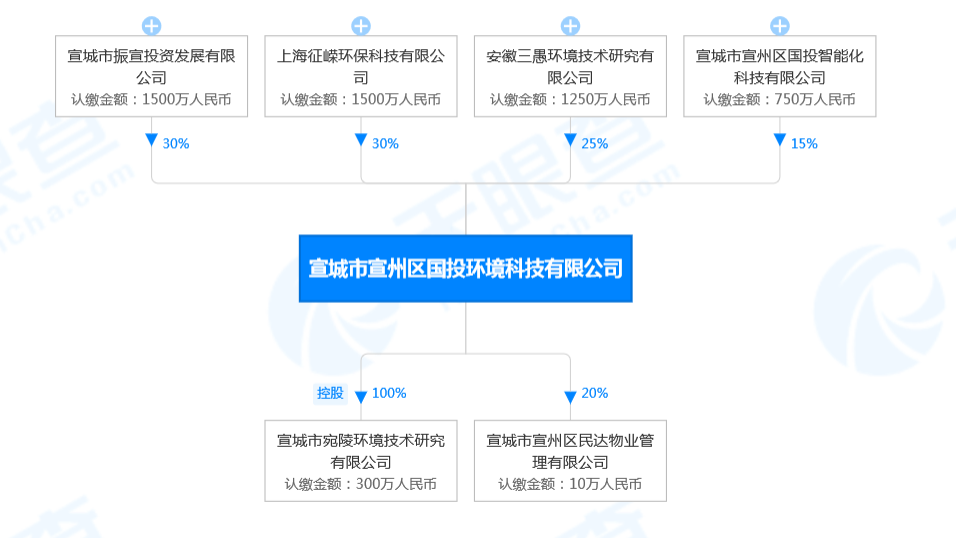 中標供應(yīng)商宣城市宣州區(qū)國投環(huán)境科技有限公司為“混合所有制企業(yè)”,成立于2020年12月,注冊資本5000萬元,由宣城市振宣投資發(fā)展有限公司、宣城市宣州區(qū)國投智能化科技有限公司(國有資本)與上海征嶸環(huán)保科技有限公司、安徽三愚環(huán)境技術(shù)研究有限公司(民營資本)合資組建,其中“民營資本”持股超過55%。