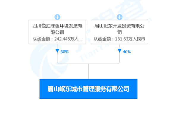 中標供應(yīng)商眉山岷東城市管理服務(wù)有限公司為“混合所有制企業(yè)”,成立于2021年8月,注冊資本404.075萬元,由眉山發(fā)展控股集團全資子公司眉山岷東開發(fā)投資有限公司(國有資本)與四川悅匯綠色環(huán)境發(fā)展有限公司(民營資本)合資組建,其中“民營資本”持股60%。