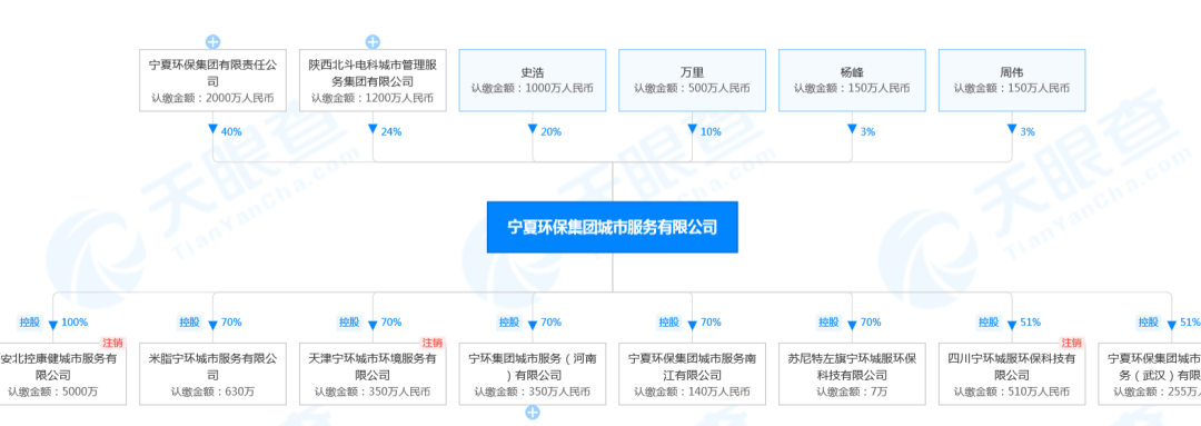 中標供應(yīng)商寧夏環(huán)保集團城市服務(wù)有限公司公司為“混合所有制企業(yè)”,成立于2018年9月,注冊資本5000萬元,由寧夏環(huán)保集團有限責任公司(國有資本)與陜西北斗電科城市管理服務(wù)集團有限公司及自然人股東史浩、萬里、楊峰、周偉(民營資本)合資組建,其中“民營資本”持股60%。