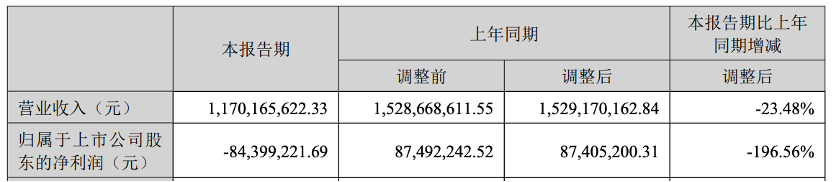 公司上半年?duì)I業(yè)收入為117,016.56萬(wàn)元,同比下降23.48%;實(shí)現(xiàn)歸屬于上市公司普通股東的凈利潤(rùn)-8,439.92萬(wàn)元,同比下降196.56%。