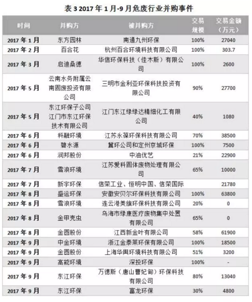 危廢處理行業(yè)并購事件整理