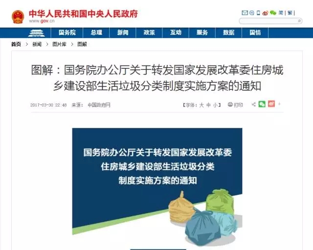 2016年12月21日,國(guó)家主席習(xí)近平在中央財(cái)經(jīng)領(lǐng)導(dǎo)小組第十四次會(huì)議中強(qiáng)調(diào),要加快建立分類(lèi)投放、分類(lèi)收集、分類(lèi)運(yùn)輸、分類(lèi)處理的垃圾處理系統(tǒng);形成以法治為基礎(chǔ)、政府推動(dòng)、全民參與、城鄉(xiāng)統(tǒng)籌、因地制宜的垃圾分類(lèi)制度;普遍推行垃圾分類(lèi)制度,努力提高垃圾分類(lèi)制度覆蓋范圍。