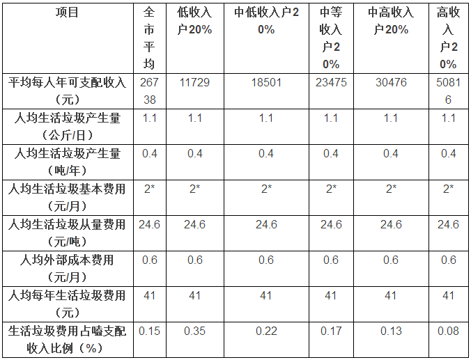 表2生活垃圾費(fèi)用占居民可支配收入比例