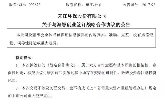 12月4日下午,東江環(huán)保發(fā)布公告稱,公司擬與中國海螺創(chuàng)業(yè)控股有限公司(下簡稱“海螺創(chuàng)業(yè)”)于2017年12月6日簽署《戰(zhàn)略合作協(xié)議》,就水泥窯協(xié)同處置固廢事宜達(dá)成戰(zhàn)略合作意向。預(yù)計雙方將在固廢處理領(lǐng)域?qū)崿F(xiàn)強強聯(lián)合、優(yōu)勢互補,共同推進(jìn)危廢處理行業(yè)的健康發(fā)展。