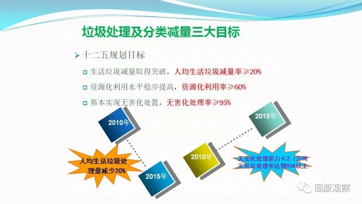 2010年以來(lái)的工作是基于十二五規(guī)劃設(shè)定的三大目標(biāo)。因?yàn)樵?010年上海的生活垃圾處理能力和處理量還是有倒掛現(xiàn)象,因此我們提出人均生活垃圾減量、生活垃圾處理的能力要提高,最后實(shí)現(xiàn)處理能力和產(chǎn)生量之間的平衡。