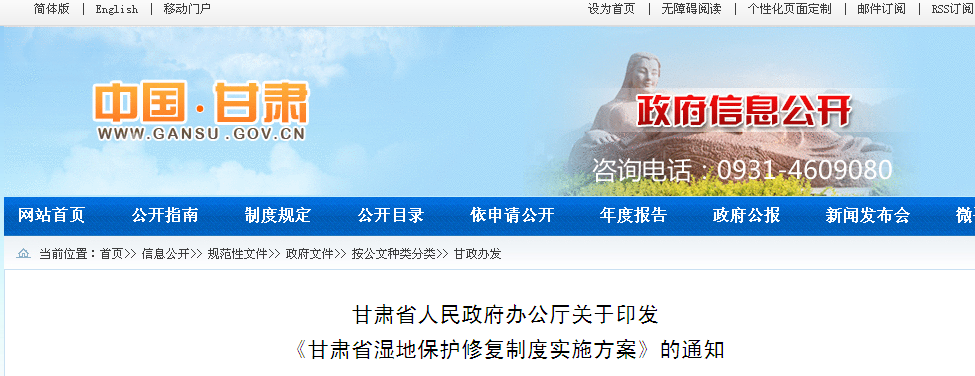 2.建立濕地分級(jí)體系。根據(jù)生態(tài)區(qū)位、生態(tài)系統(tǒng)功能和生物多樣性,將全省濕地劃分為國(guó)家重要濕地(含國(guó)際重要濕地)、省級(jí)重要濕地和一般濕地,列入不同級(jí)別濕地名錄,并建立定期更新的分級(jí)動(dòng)態(tài)管理體系。由省林業(yè)廳會(huì)同省直有關(guān)部門根據(jù)國(guó)家重要濕地(含國(guó)際重要濕地)名錄認(rèn)定標(biāo)準(zhǔn)和管理辦法,研究制定《甘肅省重要濕地確認(rèn)指標(biāo)》和《甘肅省重要濕地管理辦法》,發(fā)布省級(jí)重要濕地和一般濕地名錄。明晰國(guó)家重要濕地、省級(jí)重要濕地和一般濕地的事權(quán)劃分,認(rèn)定后的重要濕地設(shè)立標(biāo)示牌,標(biāo)明濕地面積、類型、四至范圍、主要保護(hù)物種、保護(hù)修復(fù)目標(biāo)、主管部門和管理單位、舉報(bào)電話等。(省林業(yè)廳牽頭,省國(guó)土資源廳、省環(huán)保廳、省水利廳、省農(nóng)牧廳等按職責(zé)分工負(fù)責(zé))