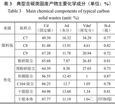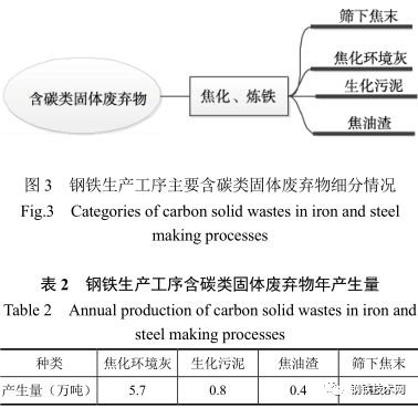 圖 3 為各工序含碳類固體廢棄物細分情況,包括篩下焦末、焦化環(huán)境灰、生化污泥和焦油渣。
