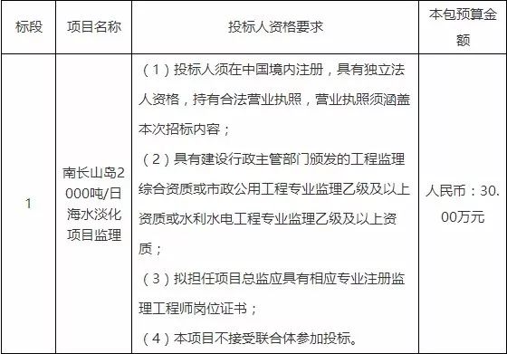 一、采購項目名稱:南長山島2000噸/日海水淡化項目監(jiān)理
