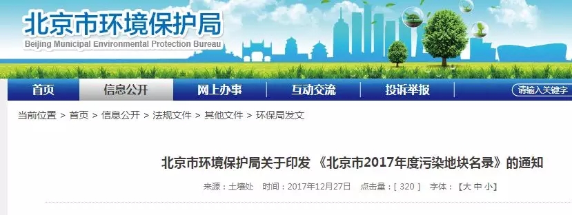 2017年12月26日 北京市環(huán)境保護局公布了《北京市2017年度污染地塊名錄》, 共有7塊污染地塊。