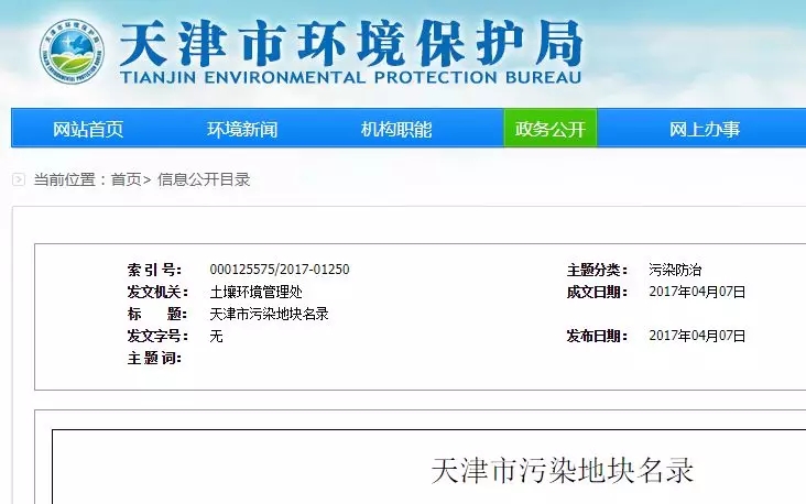 2017年4月7日天津市環(huán)境保護局 公布了《天津市污染地塊名錄》, 共有22塊污染地塊。