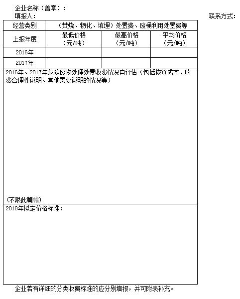 各經(jīng)營單位須按照附表1格式要求,如實填報2016、2017年危險廢物處理處置收費情況,并通過核算企業(yè)處置成本,評估分析2016年、2017年經(jīng)營價格,預報2018年經(jīng)營價格。于2018年2月7日之前報送上海市環(huán)保局,并抄送上海市固體廢物管理中心。